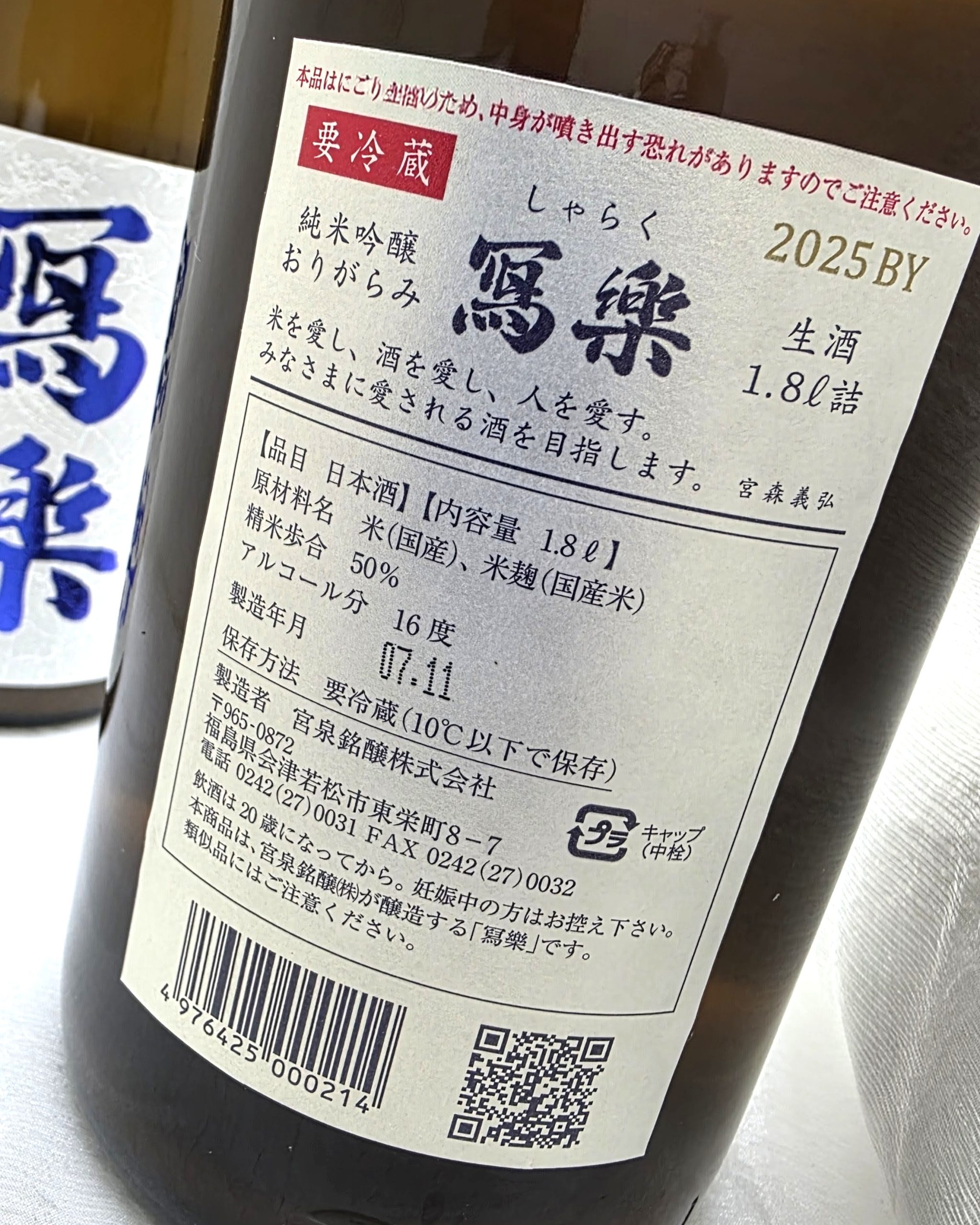 ・冩樂(福島県)純米吟醸 おりがらみ 生酒